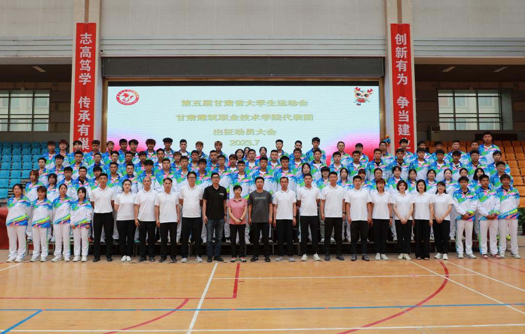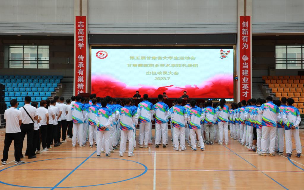 7月11日,学院举行甘肃省第五届大学生运动会代表团出征仪式,学院党委书记、院长王娟丽出席仪式,教务处处长高建兴,全体教练员,运动员参加。仪式由基础课部主任黄治学主持。