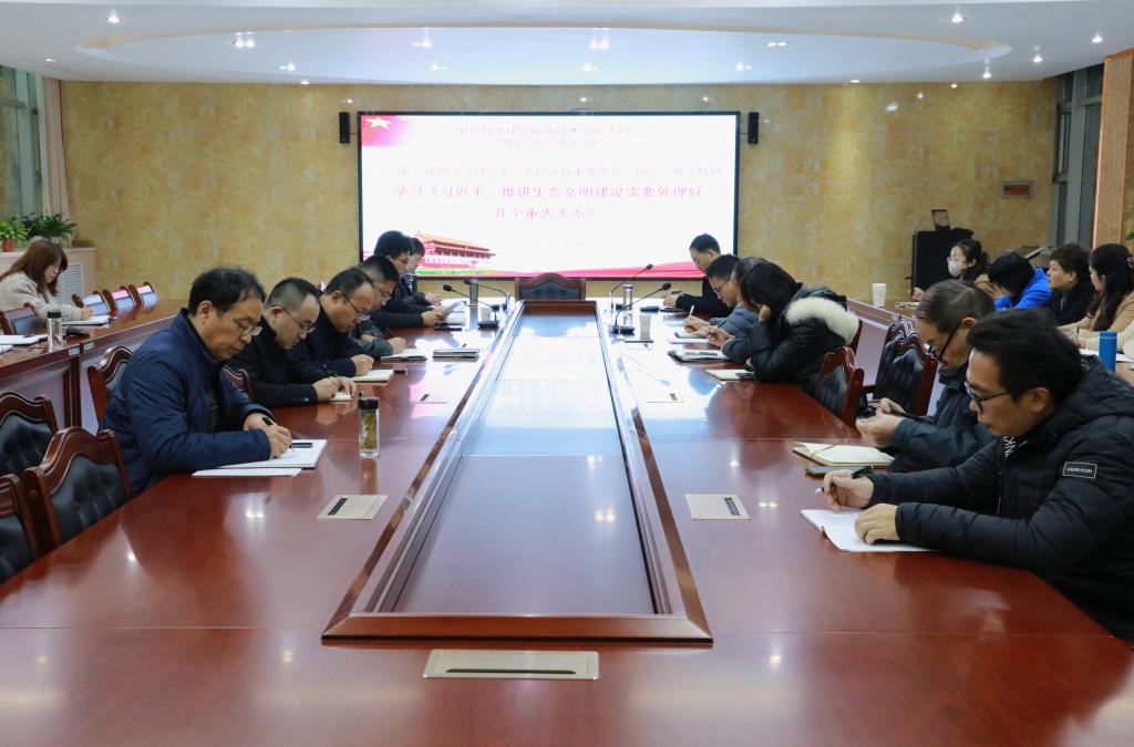 会议严格落实第一议题学习制度,由李维敦同志领学了《习近平:推进生态文明建设需要处理好的几个重大关系》。文章总结了新时代10年生态文明建设的实践经验,分析了当前面临的新情况新问题,为继续推进生态文明建设和正确处理几个重大关系指明了方向。李维敦同志结合当前建筑行业的实际发展情况,从建造方式、建造材料的变化等方面,分析了如何实现人与自然和谐共生,并围绕重点攻坚和协同治理问题、自然恢复和人工修复间的关系,以及如何将其融入课堂教学等部分做了交流发言。