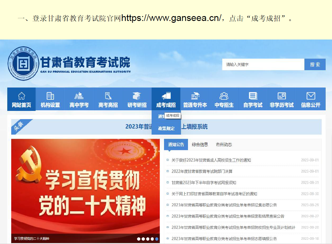 2023年甘肃省成人高考 网上报名流程