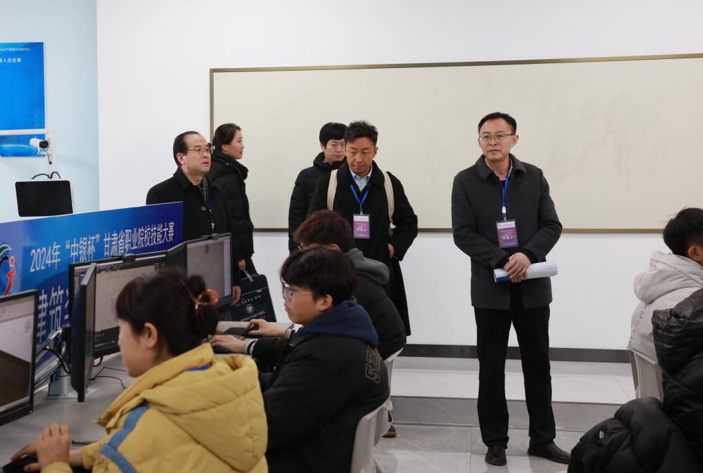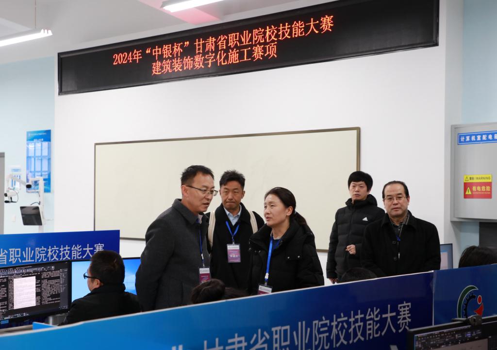 2024年“中银杯”甘肃省职业院校技能大赛甘肃建筑职业技术学院赛点监督员兼赛点仲裁组长、平凉市教育局职成教科科长王海波,赛点专家兼仲裁、甘肃工业职业技术学院邵转吉、兰州职业技术学院范庆华一行来到考场进行巡视,学院党委委员、副院长李君宏,教务处处长高建兴等相关人员陪同,详细了解了学院各比赛场地人员和设备准备情况,并查看了比赛期间各项服务保障措施。