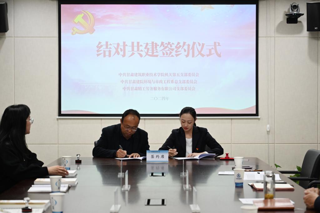 在交流学习过程中,双方就构建“资源共享、优势互补、全面发展、共同提高”党建工作新格局,紧紧围绕思想政治、体系建设、队伍建设、科技创新、党建引领保障等方面开展联建共建进行了深入的交流,并就党建工作如何扎实有效推动实际工作开展进行了详细讨论。同时大家观看了“安装公司历史发展片”和“安装公司新能源专题宣传片”,对企业发展历程有了更深入的了解。随后,学院机关第五党支部与甘肃建投安装公司精工劳务公司签订了《结对共建协议书》。