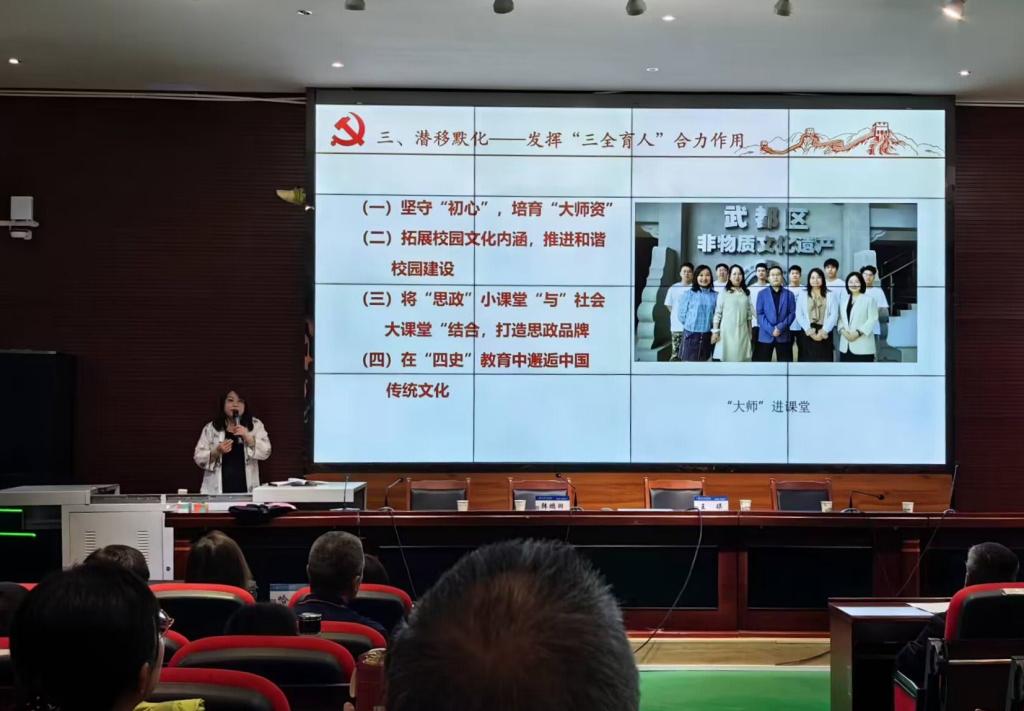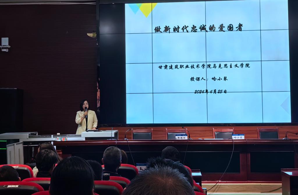 在行知楼南报告厅,名师工作室负责人王瑛作了《推进“三大课堂,三大合力”模式,构建“大思政课”立体化育人体系》的专题报告,以甘肃建筑职业技术学院为例,介绍了“大思政课”建设经验、取得的成绩以及下一步发展思路和举措。哈小琴老师讲授示范课《做新时代忠诚的爱国者》,阐明了爱国主义的本质和科学内涵,爱国爱党爱社会主义相统一。高源老师讲授的《红色音乐奏响中国式现代化》示范课,将红色音乐元素融入到思政课教学中,大大增强了课程的生动性,提高了学生学习的积极性。