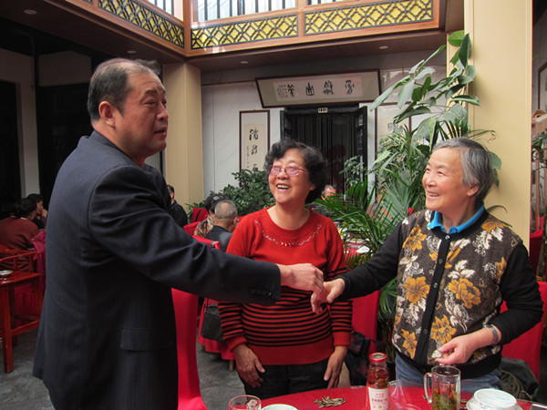 学院副院长谢钢与退休教职工交谈
