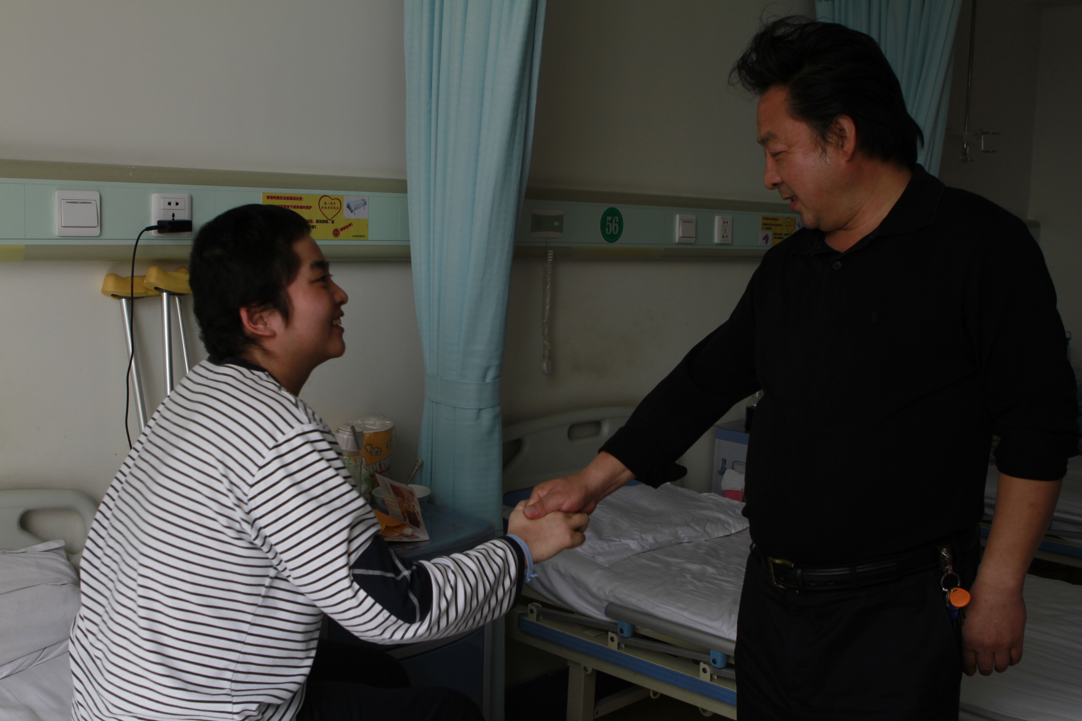 9月23日上午,学院田树涛院长、工会主席王玉平、女工主任董坤伟等一行5人,代表学院领导班子及全体教职工再次来到省肿瘤医院看望宋楠老师,并送上学院的诚挚问候及慰问金。