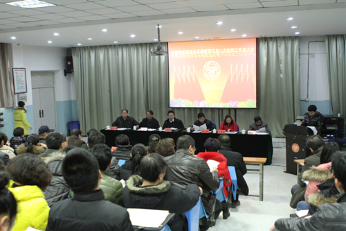 1月16日上午,甘肃建筑职业技术学院第五届二次教职工代表大会暨2014年度工作总结大会在学院礼堂隆重召开。第五届二次教职工代表大会共有正式教职工代表120名,特邀代表3名、列席代表2名。