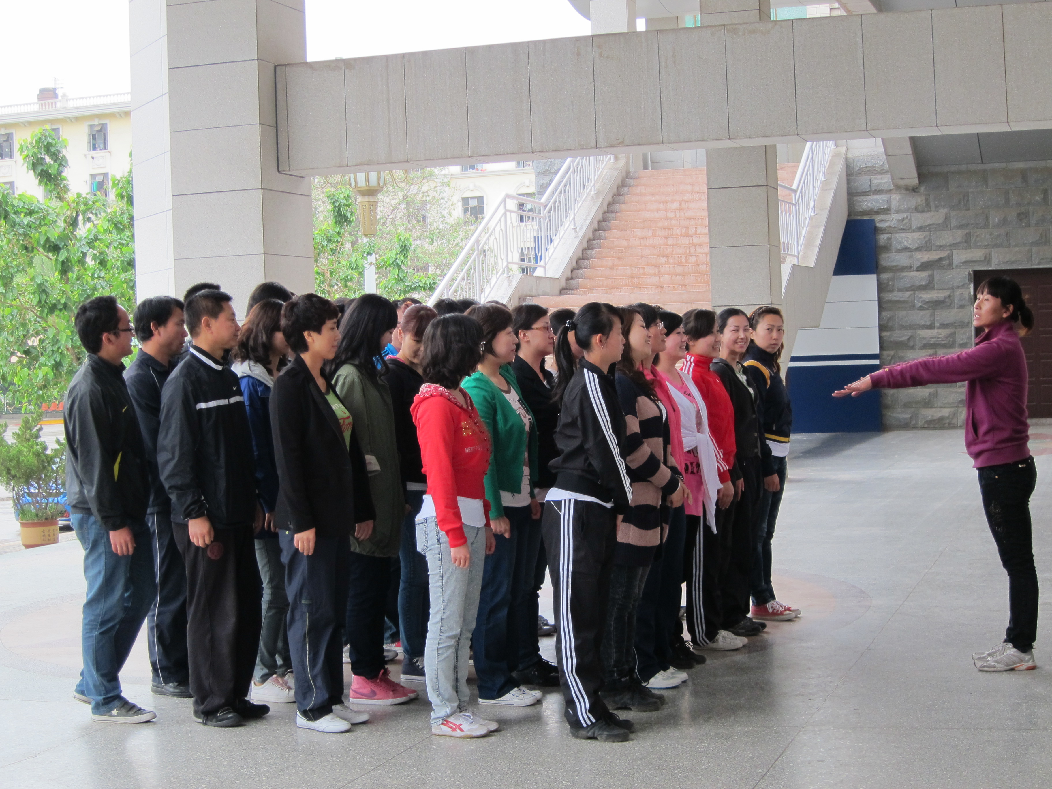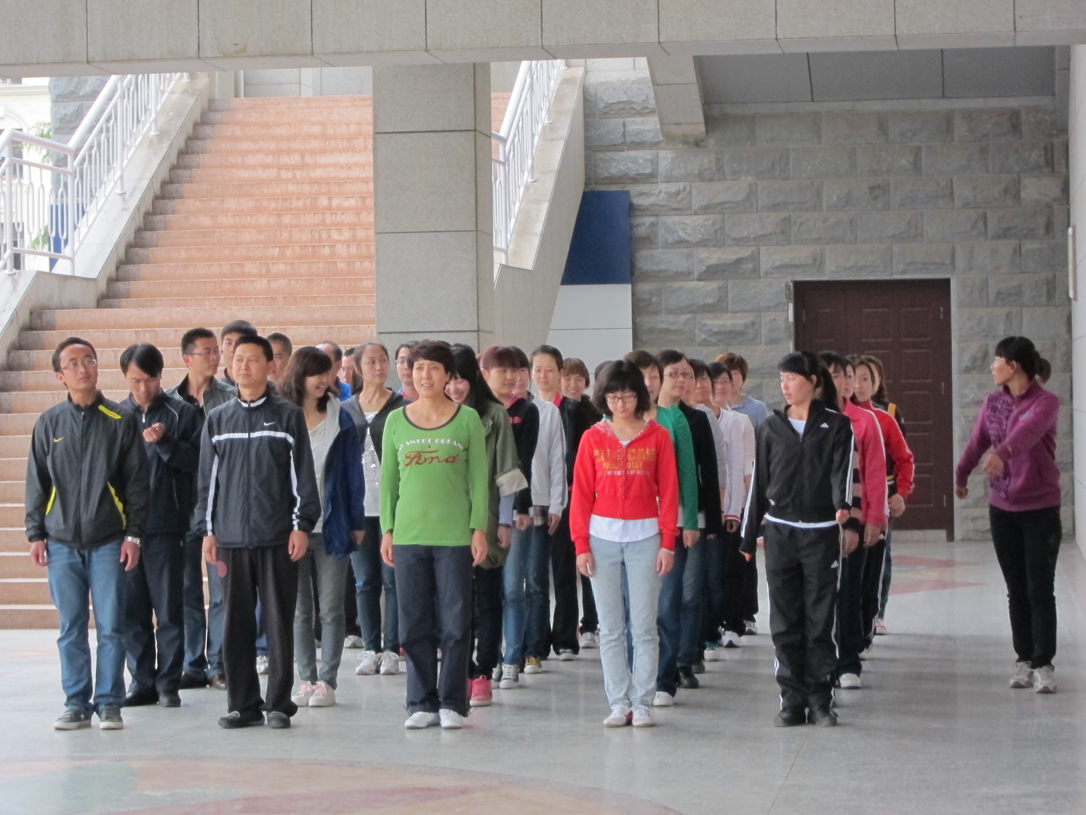 学院广播体操代表队积极开展赛前训练 日期:2012-06-04 来源: 甘肃省体育局、中共甘肃省直属机关工作委员会、甘肃省教育厅联合举办省直机关及部分单位第九套广播体操比赛。我院积极响应号召,认真组织开展此项工作。在教职工中选拔出36人组成了学院广播体操代表队,由吴瑞、应文老师担任教练,并制定详细的训练计划开展赛前训练工作。