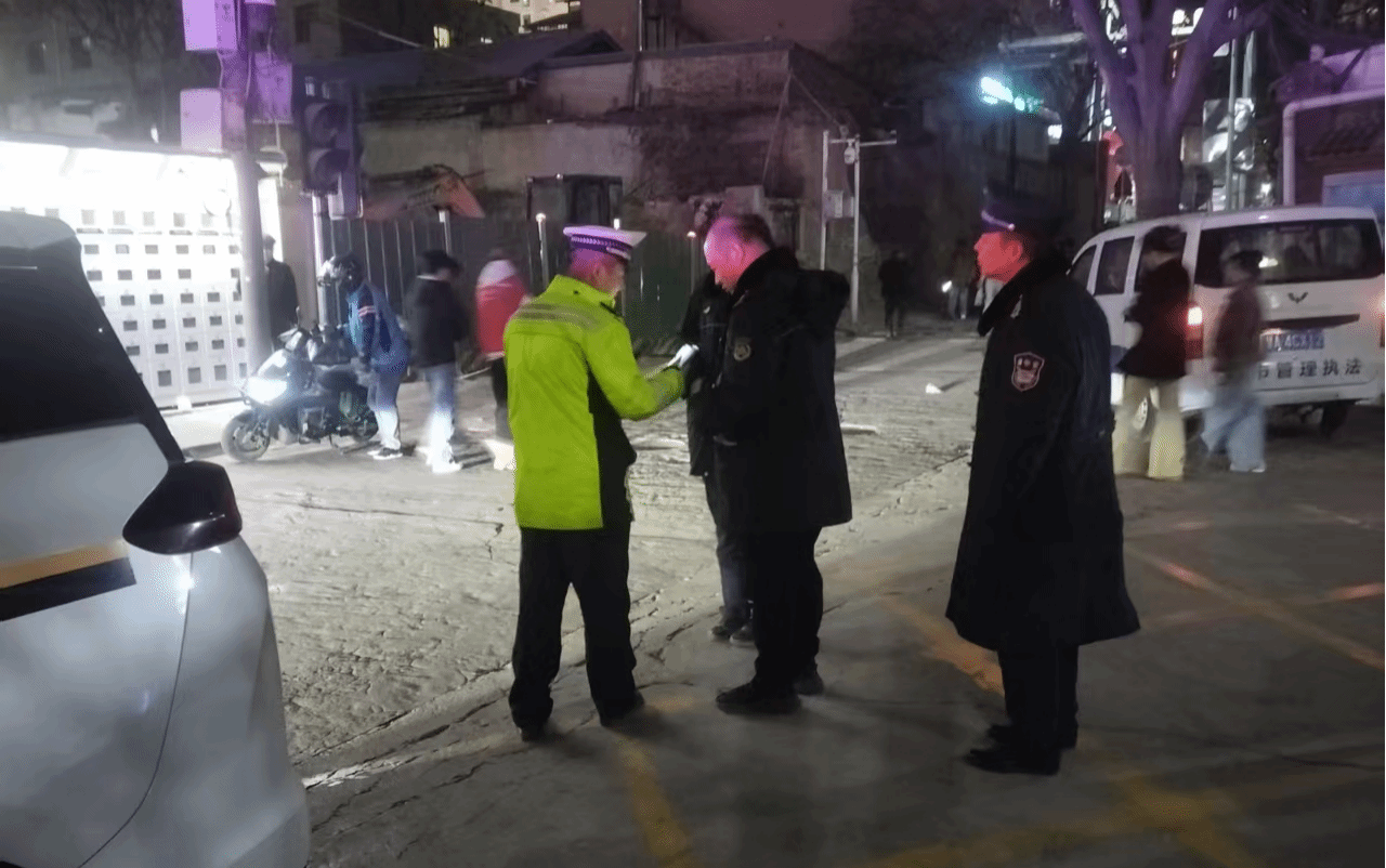 整治行动中,三方力量各司其职、紧密配合:公安交警聚焦交通违法整治,对违规停放、长期占道、阻碍通行的车辆依法劝导、警示与清理,引导车辆即停即走;城管部门对流动摊贩、占道经营开展“地毯式”清理,坚持教育为先、柔性执法,宣讲城市管理与交通安全规定;党委安全保卫部设置“护学岗”,高峰时段值守疏导,清理机动车与非机动车辆占道,全程协调配合、维护现场秩序,同步引导返校学生安全通行、提醒车辆减速礼让。