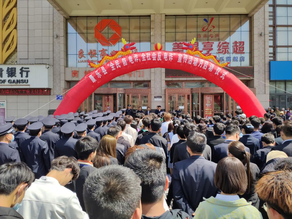 我院学生代表参加康乐县“全民防电诈,全社会反电诈”宣传月启动仪式 日期:2021-04-21 来源: 我院学生代表参加康乐县 “全民防电诈,全社会反电诈”集中宣传月启动仪式 为了提高学生的防范意识,针对泛滥成灾的电信诈骗现象,4月21日,组织我院学生代表参加康乐县“全民防电诈、全社会反电诈”宣传活动月启动仪式,活动启动仪式在良恒商业广场举行。 活动现场通过播放反电诈视频、发放宣传册、注册反诈APP、签名活动等方式,向学院师生普及电诈知识,并由我院学生代表王文博进行宣誓。