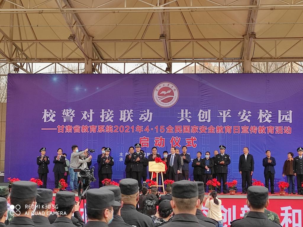 4月13日学院党委委员、副院长高忠有与保卫处负责人参加甘肃省教育厅、甘肃省公安厅主办,在兰州工业学院举行的甘肃省教育系统2021年4.15全民国家安全教育日宣传教育活动启动仪式,省、市、区及高校领导代表分别传达了重要的精神和此次活动的安排部署。
