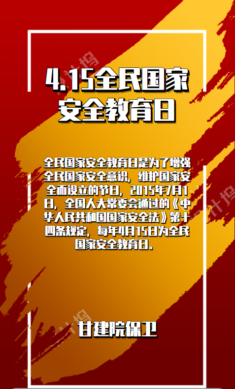 今年4月15日是第5个全民国家安全教育日。为深入学习贯彻习近平总书记关于总体国家安全观重要论述及中央、省委关于国家安全工作的决策部署,进一步增强全民国家安全意识,凝聚全民形成维护国家安全的强大合力,根据省教育厅《关于开展全省教育系统国家安全教育日宣传教育活动的通知》甘教安函[2020] 5号文件的要求,学院决定在全院开展2020年“4.15”全民国家安全教育日宣传教育活动。