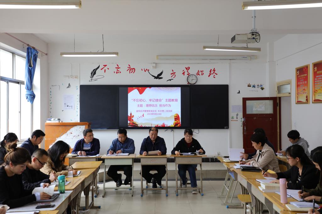 各系党总支和各机关党支部的党员们紧紧围绕“不忘初心、牢记使命”主题教育的主线和根本任务,与教育教学工作深度融合,发表自己的观点。建工系主任李维敦发言时讲到,认真学习、践行知行合一,把好支部发展方向,守好教育工作者的初心。做好表率,用支部日常工作效率见证个人的学习效果,以突破支部急需解决问题验证担当意识,落实好个人既是管理者又是服务者的行动标准。建经系杨文娟老师谈到,作为一名党员教师,初心是认认真真上好每一节课,并传达给学生正能量。团委书记张磊谈到,工作中时刻为师生服务,尽我所能的为其排忧解难。这就是理想信念的支持,担当作为的支撑。
