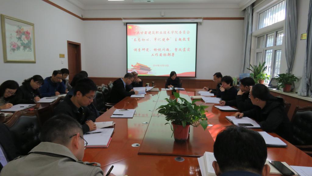 学习结束后,党委书记、院长王娟丽宣读了《甘肃建筑职业技术学院“不忘初心、牢记使命”主题教育调查研究、检视问题工作的实施方案》,并强调,开展此次检视问题和整改落实工作,就是要进一步落实主题教育的总要求,要将主题教育学到深处,严格检视问题、正视问题、解决问题。为将检视问题落到实处,学院将于近期组织由学院领导为组长的5个调研组,分赴各自的对接基层单位,进行调研检视和解决党委领导核心作用发挥不充分、学校管理执行力不强,增强中国特色社会主义道路的“四个自信”措施不多、效果不好;对意识形态工作重视不够、敏锐性不强、投入精力不多;做人民满意的“四有”好老师、做“四个引路人”重视程度不够,存在“五唯”思想,师德师风建设和政治素养建设欠缺;基层党组织设置不合理,工作任务不明确,作用发挥不明显;以及学生社团政治方向不明确、导向作用发挥不足、教育功能不充分等方向的调研。