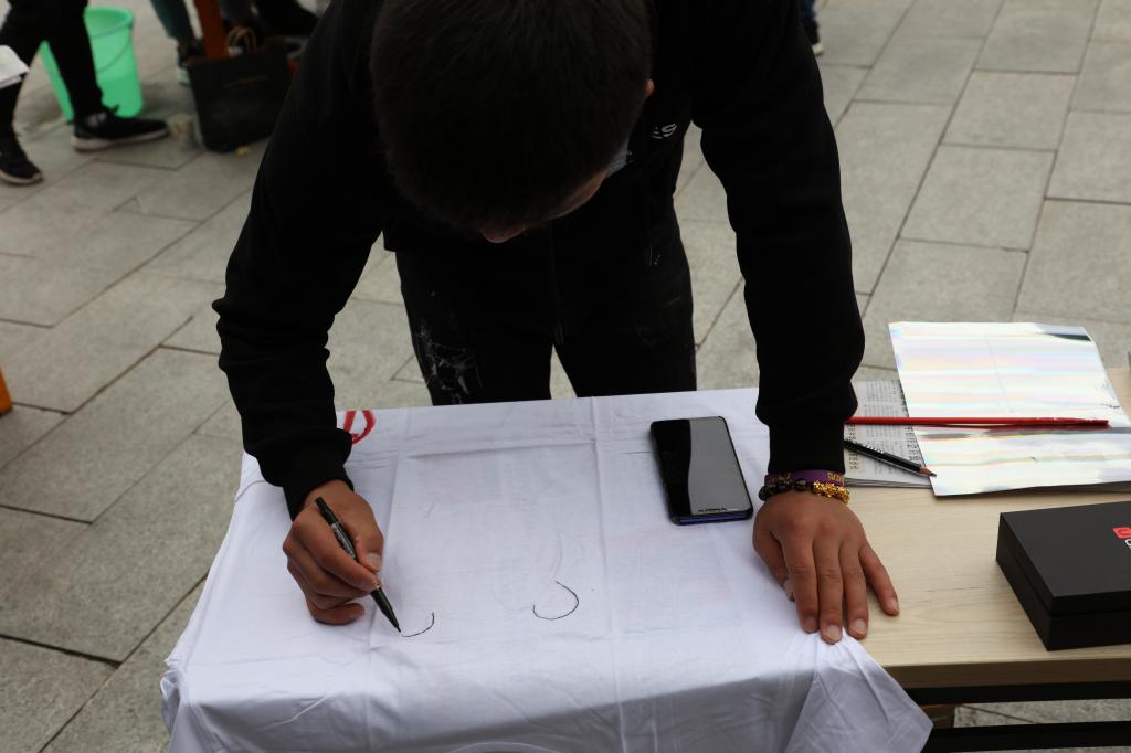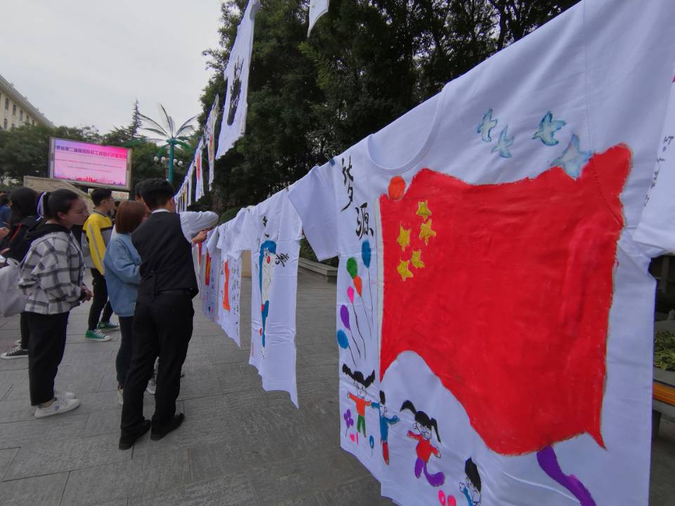 活动现场,学生们手握画笔,展开无限联想,描绘着祖国的壮丽蓝图,将五颜六色的颜料幻化成绚丽多彩的各种图腾,让自己天马行空的创意在白T上大展风采,通过彩笔描绘出爱国敬业、民族团结,学子们用一件件彩绘原创T恤表达对祖国的祝福,用一双巧手展现了艺术的魅力,为营造高雅校园生活及建设书香校园再添一笔锦绣!