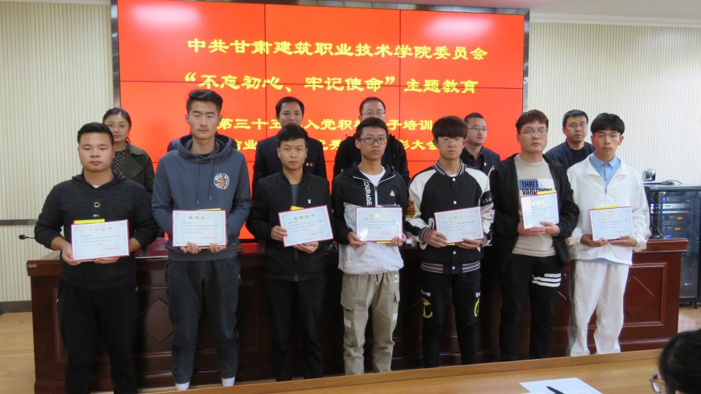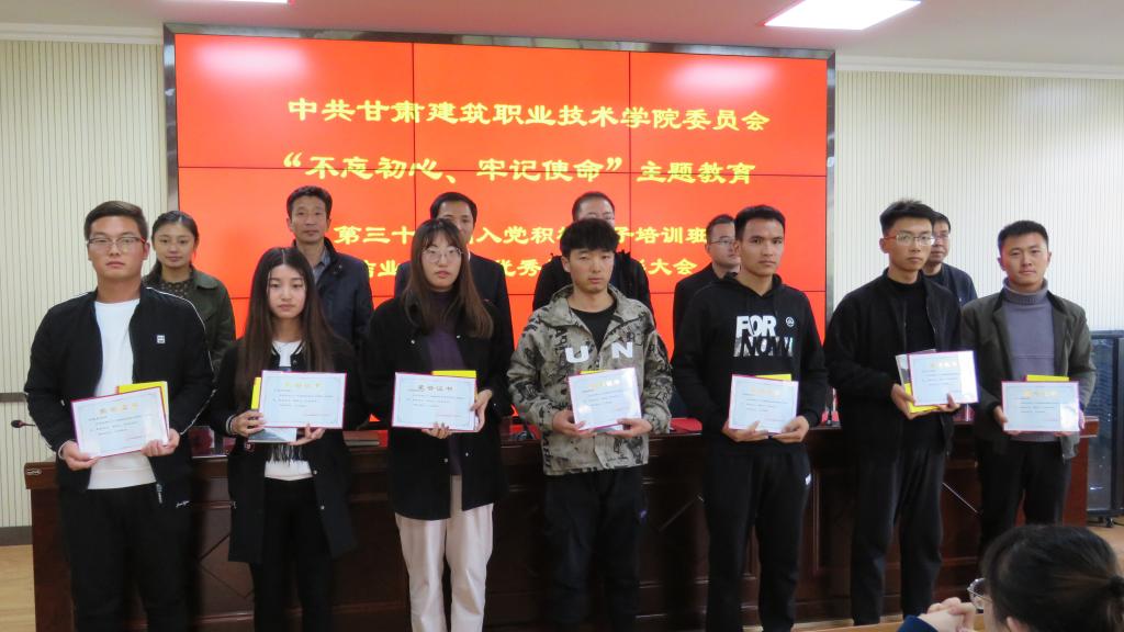 根据甘肃建筑职业技术学院“不忘初心、牢记使命”主题教育安排,10月22日中午,学院第35期入党积极分子结业典礼暨优秀学员表彰大会举行。学院组织人事处处长、院办主任张长颖参加了会议,各系党总支书记和党务干事以及全体学员参加了本次大会,交通工程系党总支书记于鹏祖主持大会。