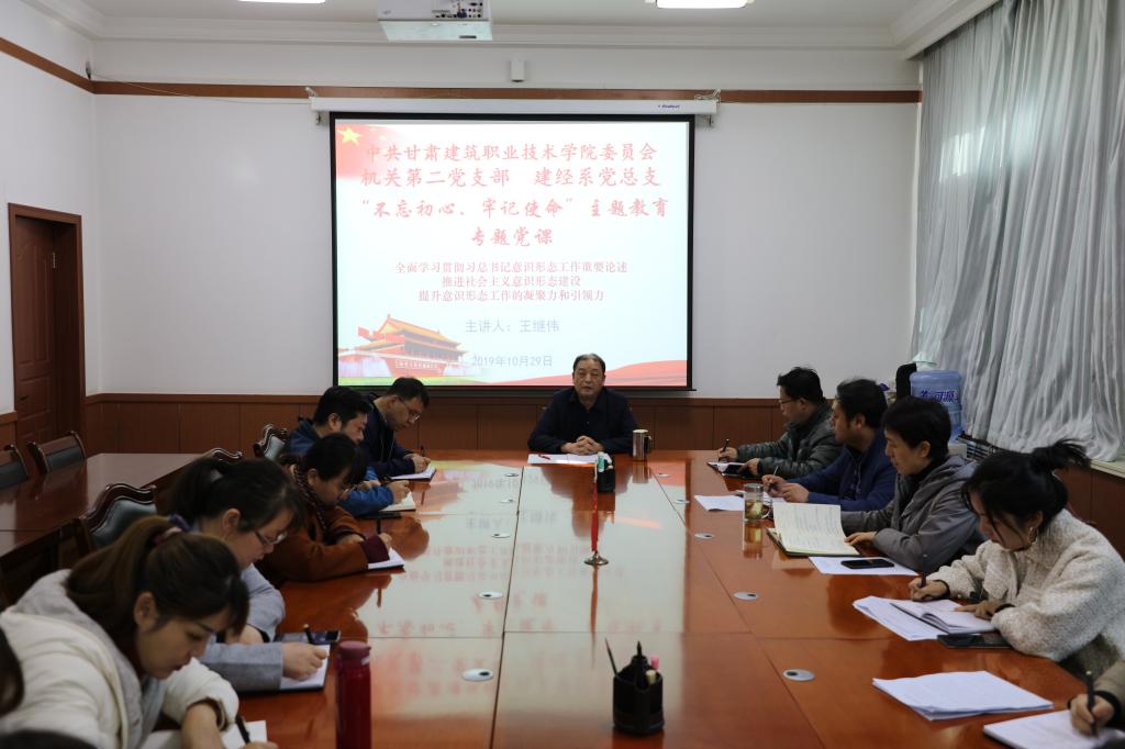 为什么意识形态工作是党的一项非常重要的工作?如何看待意识形态领域形势的复杂性?10月29日,学院党委副书记王继伟以“全面学习贯彻习近平总书记意识形态工作重要论述, 推进社会主义意识形态建设,提升意识形态工作的凝聚力和引领导力”为题,给建筑经济管理系和机关第二党支部的党员们上了一堂生动的党课。