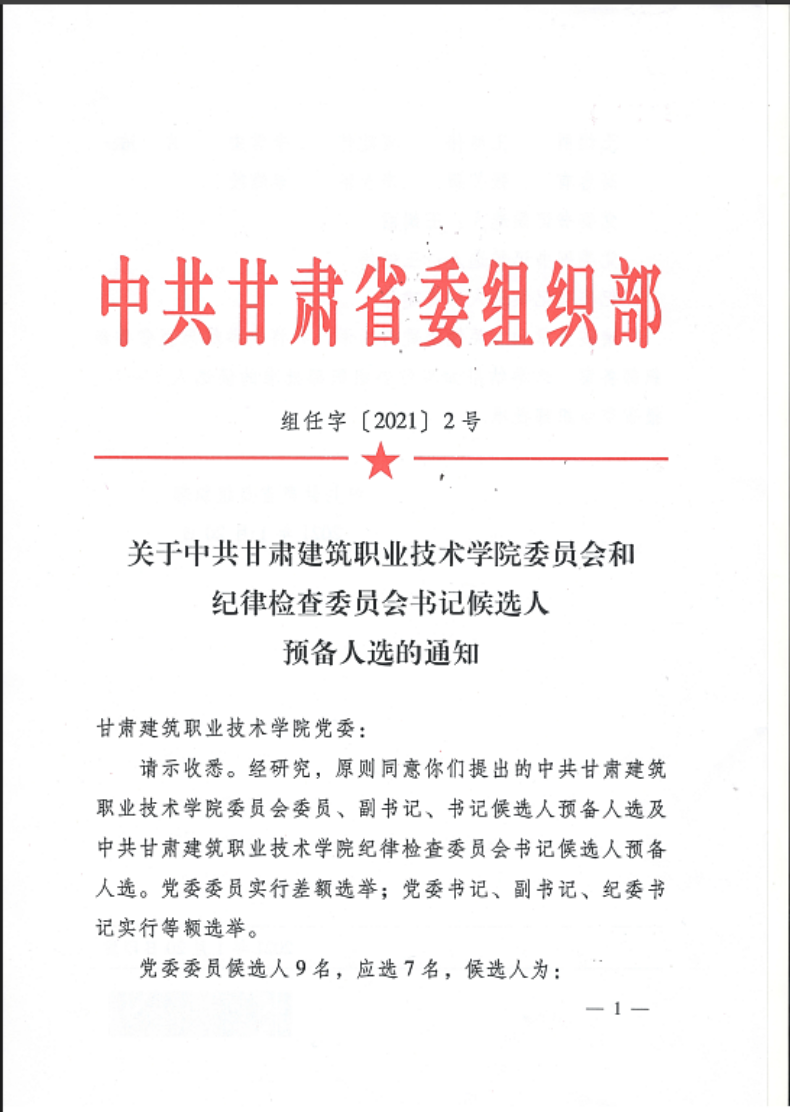 省委组织部关于党委委员和纪委书记候选人预备人选的通知