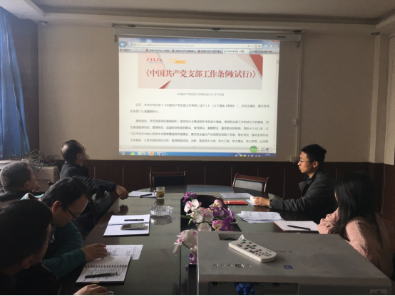 机关第二党支部在接到省委办公厅、省教育厅、学院党委分别下发的《关于认真学习宣传贯彻<中国共产党支部工作条例(试行)>的通知》文件后,及时做出了详细的学习安排并下发了通知。于2018年12月5日(星期三)下午15:10在1号教学楼三楼会议室组织支部党员共计15人集体逐字逐句的学习了《中国共产党支部工作条例(试行)》全文。