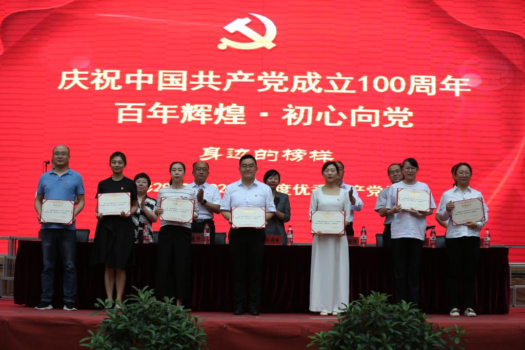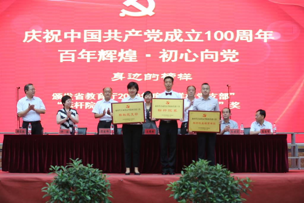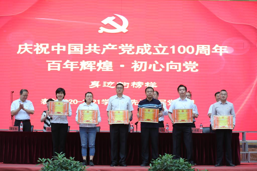 学院领导为获奖的优秀共产党员、优秀辅导员、先进党支部、样板党支部、标杆院系、标杆院系培育对象颁发了荣誉证书及奖牌。