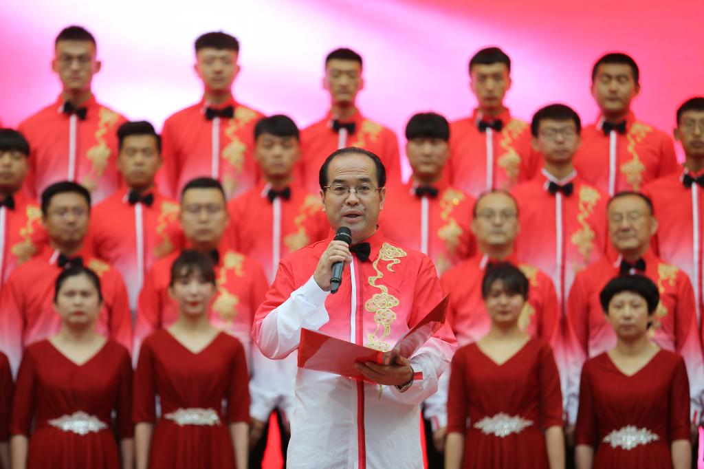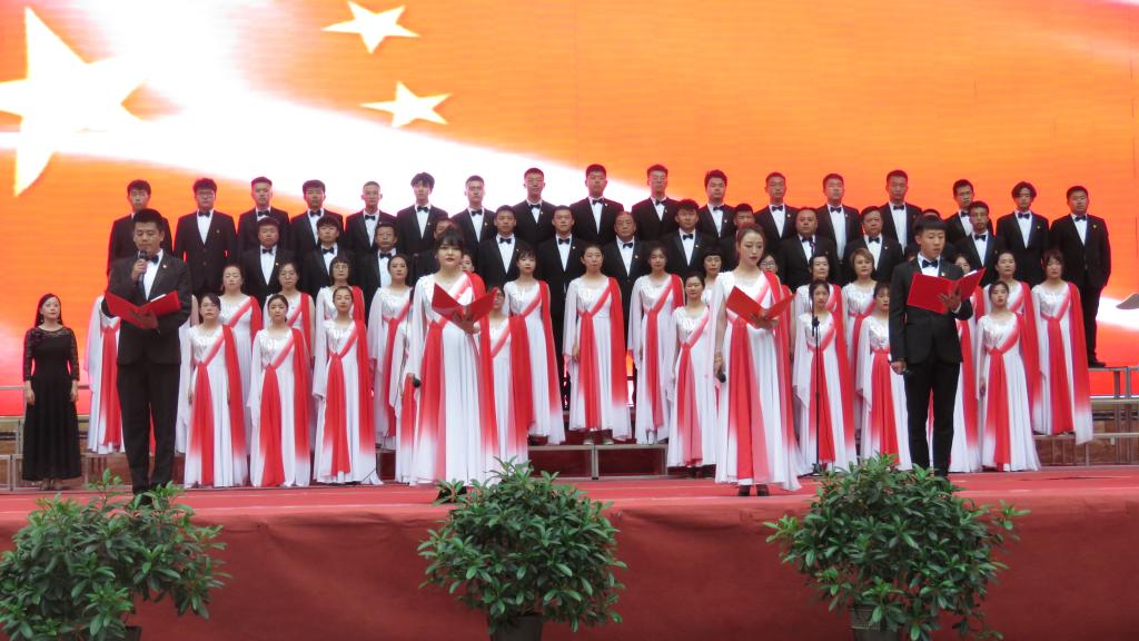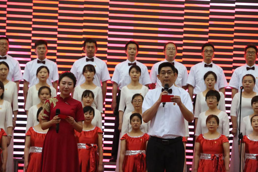 表彰大会结束后,举行了精彩纷呈的“百年辉煌、初心向党”经典诵唱文艺演出活动。首先,由机关第二党支部和建经系党总支带来的诗朗诵《黄河颂》、合唱《保卫黄河》拉开文艺表演的序幕,朗诵者充满激情、豪迈的气势,和大合唱《保卫黄河》演唱,把观众的思绪带入了青纱帐、高梁熟了的恢宏场景。由机关第三党支部和测绘地理信息系党总支表演的《初心如磐,逐梦前行》,合唱《没有共产党就没有新中国》《走向复兴》;机关第五党支部和交通工程系党总支表演的诗朗诵《百年风雨,砥励奋进》、合唱《唱支山歌给党听》;机关第四党支部和建筑系党总支诗朗诵《最好的时代》、合唱《向往》;最后,由机关第一党支部、建筑工程系党总支、环境与市政工程系党总支、基础课部党总支带来了精彩的诗朗诵《梦想照亮中国》,铿锵有力、饱含深情的朗诵将现场的气氛推向了高潮,伴随着合唱《在灿烂阳光下》,整场演出落下了帷幕。文艺演出生动展现了中国共产党百年来带领中国人民进行革命、建设、改革的壮美画卷,热情讴歌党的十八大以来,在以习近平同志为核心的党中央坚强领导下,中国特色社会主义进入新时代,昂首阔步迈向全面建设社会主义现代化国家的新征程。