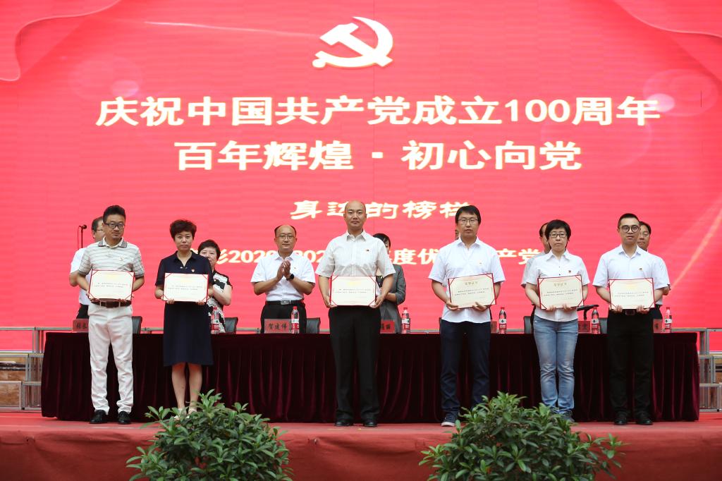 党委委员、副院长许洁宣读《中共甘肃建筑职业技术学院委员会关于表彰2020-2021学年度“两优一先”的决定》,决定指出,一年来,学院各级党组织和全体教职工党员高举中国特色社会主义伟大旗帜,深入学习贯彻习近平新时代中国特色社会主义思想,增强“四个意识”、坚定“四个自信”、做到“两个维护”,主动服务学院发展改革事业,攻克关键“卡脖子”难题等各项工作任务中,充分发挥了基层党组织战斗堡垒作用和党员先锋模范作用,展示了学院各级党组织“稳定器”“压舱石”的责任担当。激励各级党组织和广大共产党员奋发有力、扎实工作,知重负重、攻坚克难,爱岗敬业,勇挑重担,积极工作,为学院改革发展再创佳绩。