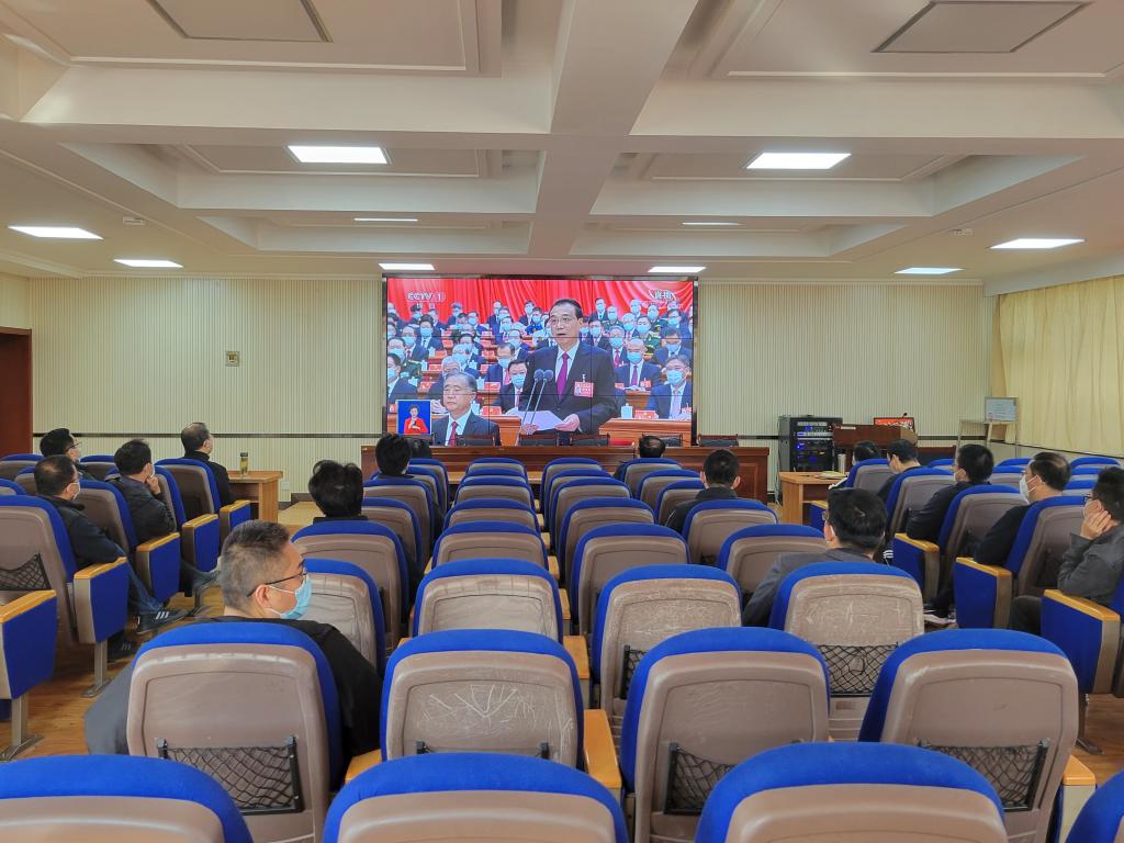 甘肃建筑职业技术学院组织驻校党委班子成员,党员干部在学术报告厅集中观看。学院党委书记、院长王娟丽,党委委员、纪委书记、监察专员贺建伟,党委委员、副院长许洁,党委委员、组织人事处处长、院办主任张长颖,以及部分中层干部集中收看了中国共产党第二十次全国代表大会直播盛况。