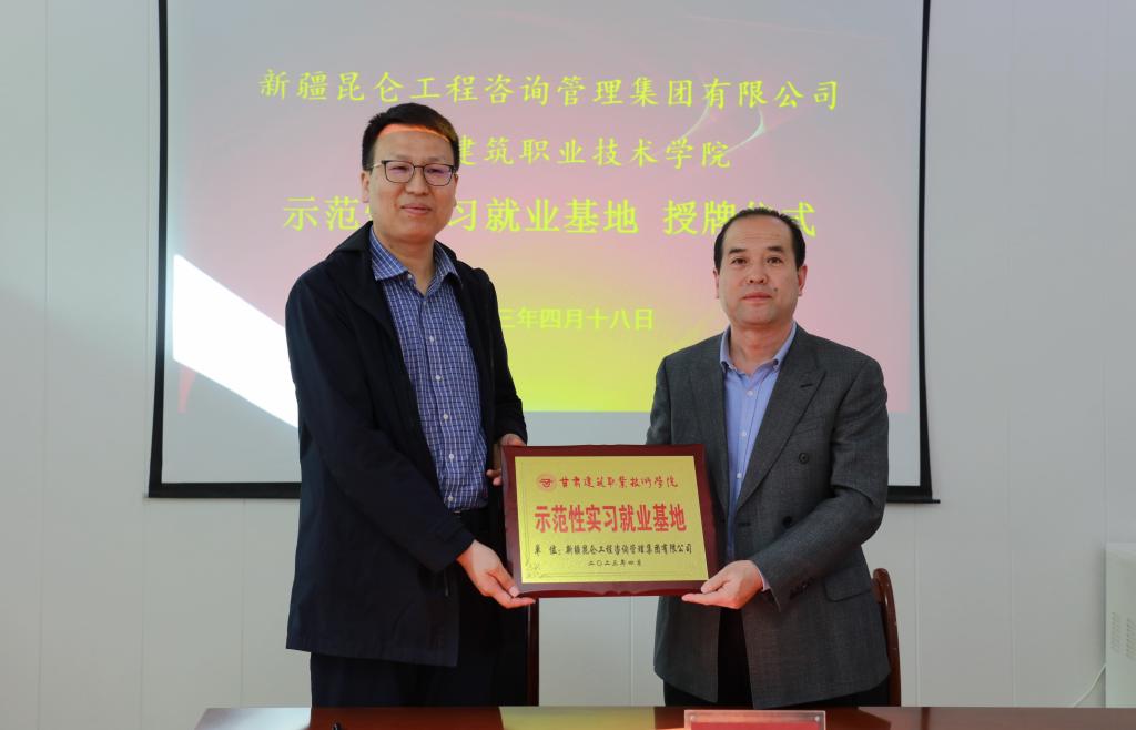 研讨会上,李君宏同志介绍了我院的基本情况,张富民同志介绍了企业基本情况。双方重点围绕校企合作和学生实习及就业工作开展交流研讨。随后,双方签订了《甘肃建筑职业技术学院校外实习实训基地合作协议》,并举行了“示范性实习就业基地”授牌仪式。