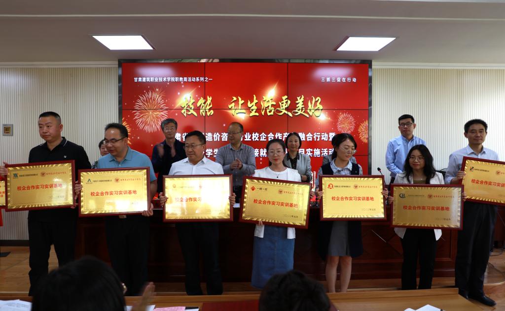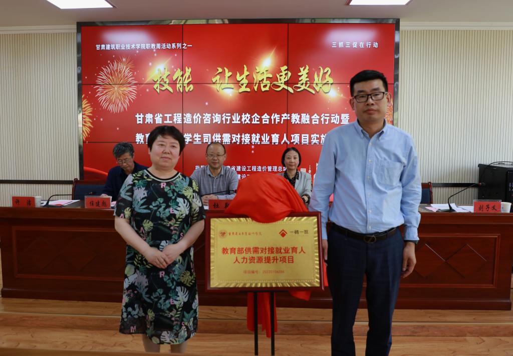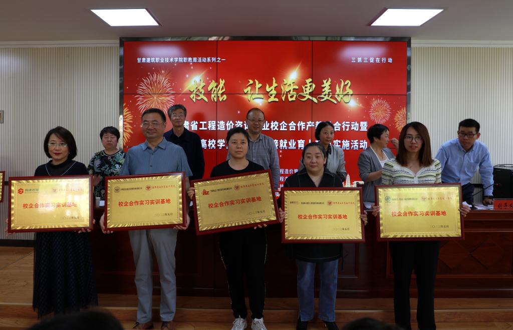 5月19日,甘肃省工程造价咨询行业校企合作产教融合行动暨教育部高校学生司供需对接就业育人项目实施活动在我院举行。甘肃省建设工程造价管理总站站长杜翔,甘肃建筑职业技术学院党委书记、院长王娟丽,学院党委委员、副院长许洁,甘肃省建设工程造价管理协会理事长杨青花,兰州工业学院、兰州资源环境职业技术大学、兰州石化职业技术大学、兰州现代职业学院、兰州信息科技学院以及甘肃省建设工程造价管理协会28个会员单位参加了活动。