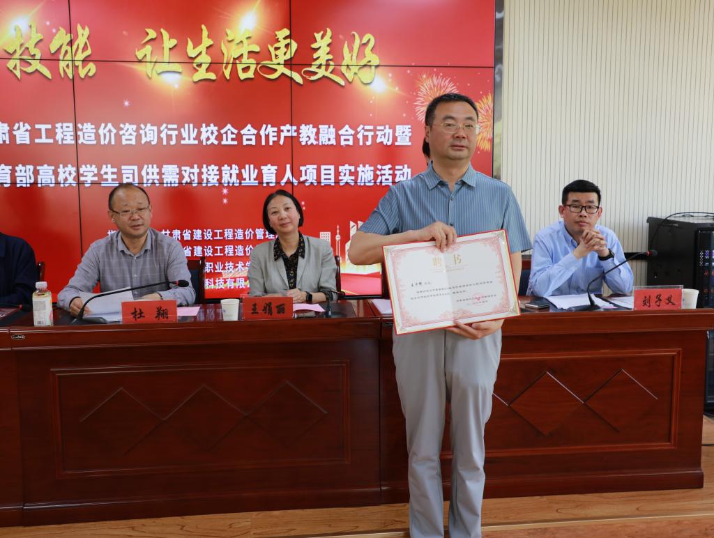 并在甘肃省建设工程造价管理协会的组织下,学院与28家签订了校企合作的造价咨询企业举行了授牌仪式。会上,还成立了工程造价专业校外专家指导委员会,专家为校企合作院校提供专家讲座,参与人才培养方案修订,参加专业人才建设论坛等,并在会议上宣读了专委会名单及管理办法。