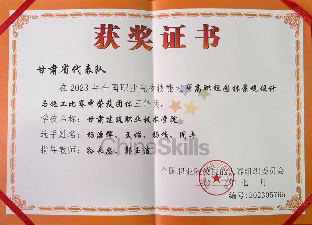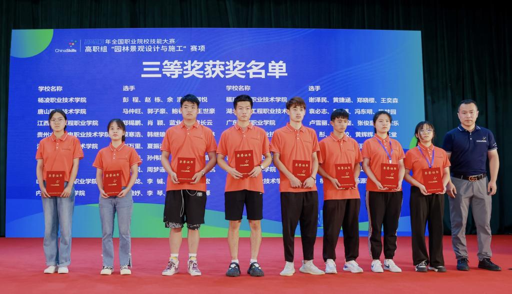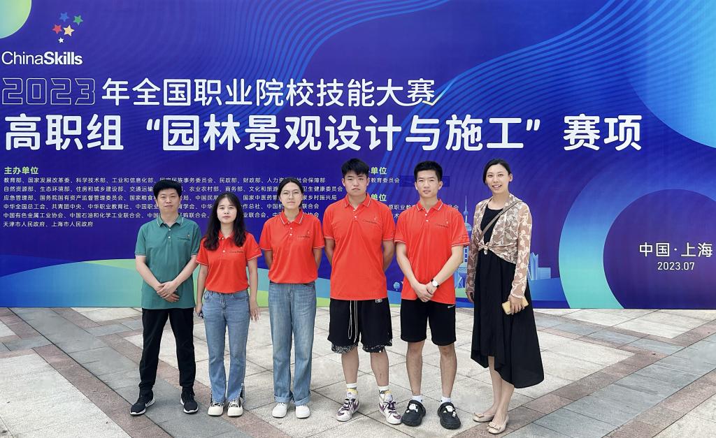 学院在2023年全国职业院校技能大赛高职组“园林景观设计与施工”赛项中喜获佳绩 日期:2023-07-30 来源: 7月26日,2023年全国职业院校技能大赛高职组“园林景观设计与施工“赛项在上海农林职业技术学院圆满闭幕。 本次大赛共有来自全国31个省份的55支队伍参赛,经过2天的激烈角逐,由我院建筑系主任杨晶带队,系副主任孙来忠和郭玉洁老师的指导下,参赛选手杨源辉、王熠、周冉、杨楠获得团体三等奖的佳绩。 2023年全国职业院校技能大赛高职组“园林景观设计与施工”赛项为团体项目,包含园林景观设计与园林景观施工两个工作任务,2位设计选手和2位施工选手根据任务分工完成一件园林景观作品。