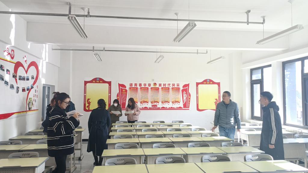 11月29日中午12:30,学生工作处、教务处、党委宣传部、保卫处、后勤管理处和六系的领导、老师组成了教室布置大赛评比工作小组,实地走访每间教室,严格按照比赛的评分标准,对教室整体卫生、班务栏设置、各类安全隐患排查、育人氛围等四个方面进行检查并集中评分。