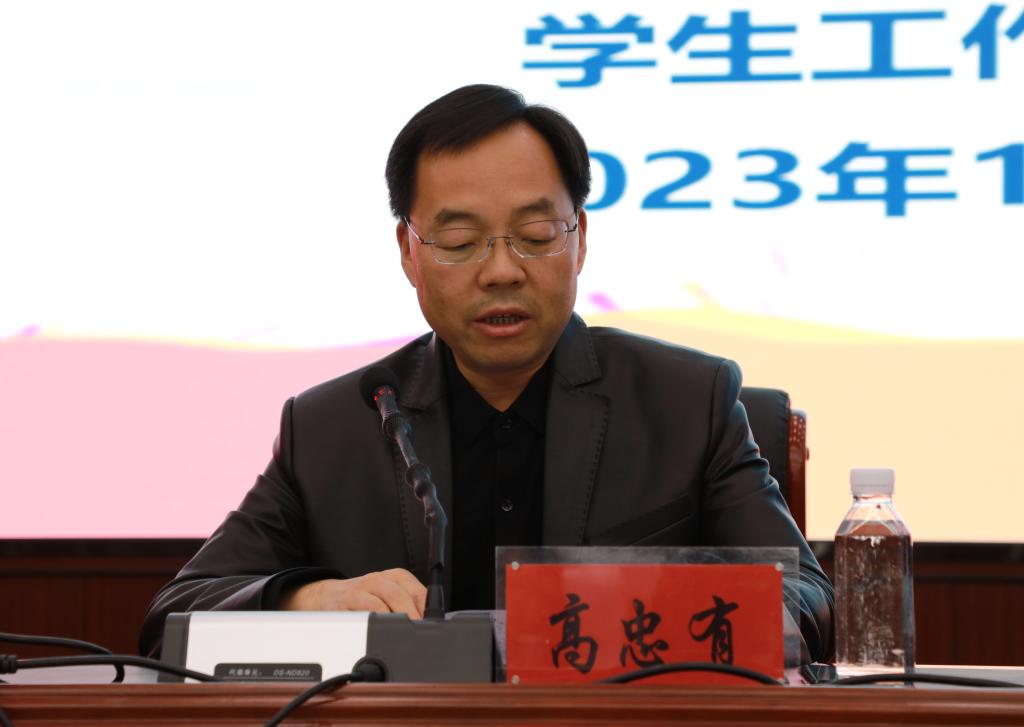 高忠有在总结发言时讲到,学院近年来高度重视精神文明建设工作,积极落实相关要求,不断扩大文明校园创建活动的覆盖面和影响力,学院良好形象得到大幅度提升,得到各级文明办和社会的高度认可。并针对目前学风建设、校园文明建设等方面存在的问题提出了四点建议,一要深刻理解创建文明校园重要意义,坚决打赢文明校园创建工作攻坚战;二要加强领导,精心组织,把工作做深、做细、做扎实,对出现的新问题要及时解决;三要广泛发动,充分利用各类媒体平台,全方位宣传文明校园创建工作;四要整合力量,各部门沟通协调、同步推进。最后,他号召全院师生迅速行动,高质量、高标准完成创建工作的各项任务。