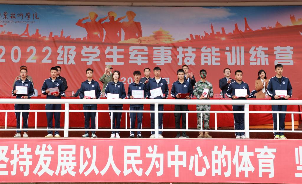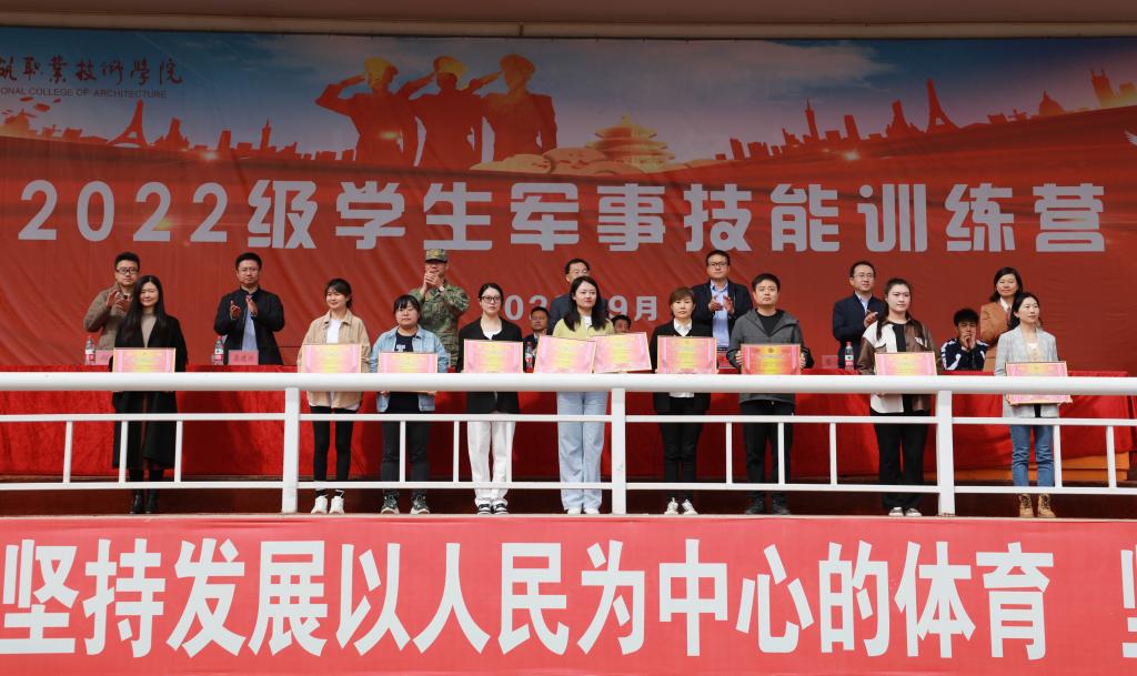 表演结束后,教务处处长高建兴宣读了《甘肃建筑职业技术学院关于表彰2022级学生军训先进集体及个人的决定》,主席台领导为先进集体和先进个人颁发了荣誉证书。