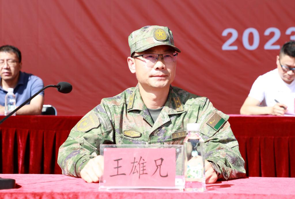 王雄兄同志在讲话中表示,通过军训,能够有效提高同学们的政治觉悟,激发同学们的爱国热情,全面培养同学们的坚强毅力和集体意识,全面增强同学们的国防观念和军事技能。他强调,各位参训人员要把军训当作政治任务来完成,认真贯彻落实党中央,中央军委、省军区和学院党委的决策部署;还要把军训当作主责主业来完成,严格落实专业化、职业化、科学化军训模式,确保军训质量;更要把军训当作锤炼作风来完成,做到不叫苦、不喊累、精神饱满,意志坚强,全身心投入军训中来。
