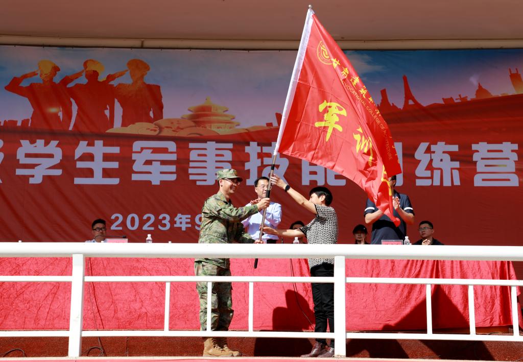 王娟丽同志为军训团授旗。全体参训同学向军训团团旗宣誓。由此,甘肃建筑职业技术学院2022级学生军训拉开帷幕。