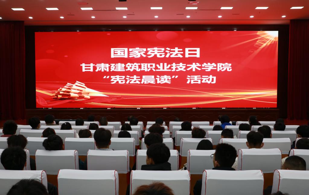 为“大力弘扬宪法精神,建设社会主义法治文化”深入开展宪法学习宣传教育活动,在12月4日,在第十个国家宪法日,教育部组织开展了“宪法晨读”活动。甘肃建筑职业技术学院以视频会的形式参加了本次活动,党委书记、院长王娟丽及领导班子成员,中心组全体成员以及部分师生代表共计400余人集中观看。