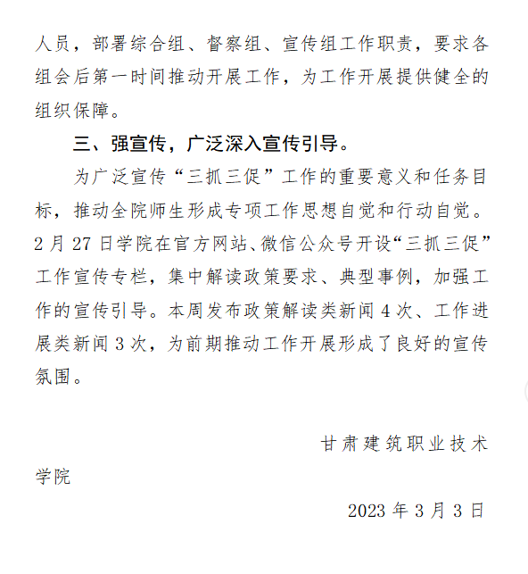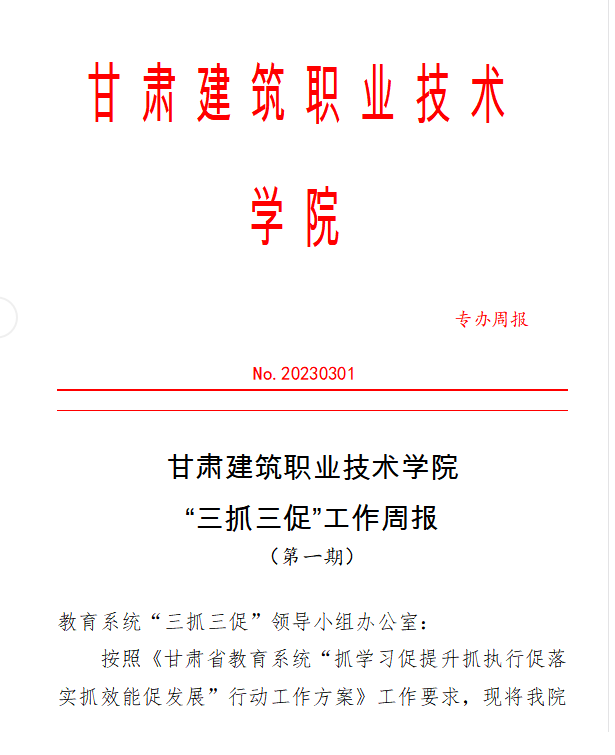 【三抓三促】甘肃建筑职业技术学院“三抓三促”工作周报(第一期.20230301)