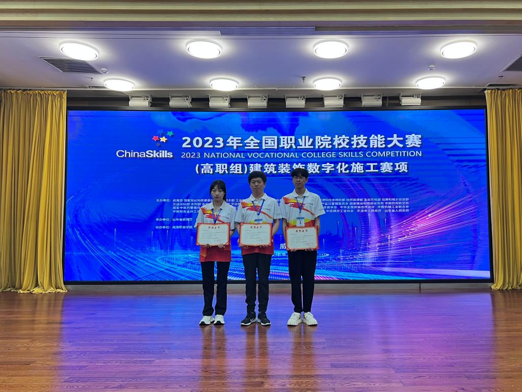 在国家级和省级专业竞赛中获得特等奖3项、一等奖11项、二等奖10项、三等奖13项,并获得优秀指导教师奖;荣获全省教学能力大赛二、三等奖各1项。其中,2023年获得一带一路暨金砖国家园林景观设计虚拟仿真赛项国赛一等奖 ,2023年荣获建筑装饰数字化施工师生同赛国赛二等奖、园林景观设计与施工赛项国赛三等奖,2023年获得第十八届全国大学生课外学术作品挑战杯国赛三等奖,2024年荣获世界职业院校技能大赛总决赛争夺赛高职组文化艺术赛道环境艺术设计、舞台布景两个赛项获铜奖2项,2024年荣获人社部一类大赛第四届全国工业设计职业技能大赛决赛职工组三等奖。